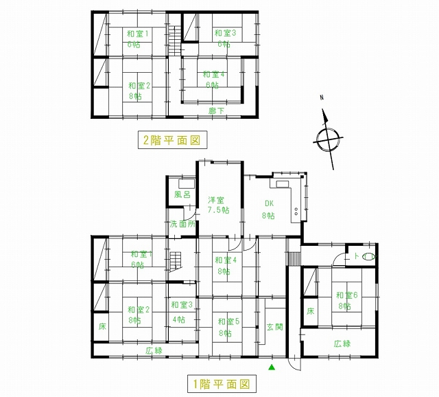 ・岩村町の北東部、山岡町境に近い田んぼに囲まれた木造2階建て10DKの古民家です。