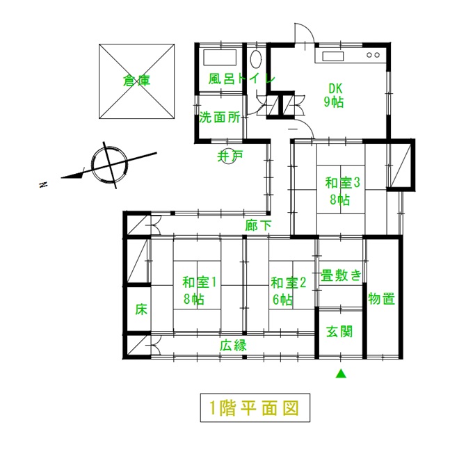 ・岩村城下町から北に少しはなれた静かな通り沿いの木造平家3DK+物置のコンパクトな和風住宅です。