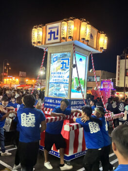 大がかりなお神輿や山車は、企業や団体をアピールするオリジナルのもの。