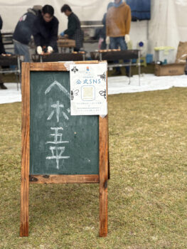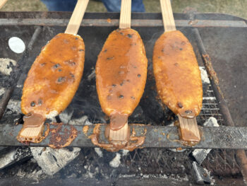 くしはらヘボまつりの名物「ヘボ五平」が販売されていました。