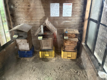 近年は自然の減少によって蜂も減ってきているので、串原では秋に女王蜂を捕まえて越冬させ、春になったら自然に返し、夏になったらその巣を見つけて人工飼育で育てるなど、ヘボの保護や育成に力を入れているそうです。