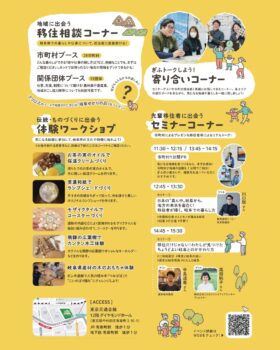 地元の情報が詳しく聞ける移住相談ブースや、5つの体験・ワークショップ、先輩移住者による本音のセミナーイベントなど、東京で「ぎふの魅力」に出会うことのできる、岐阜県最大級の移住イベントです。