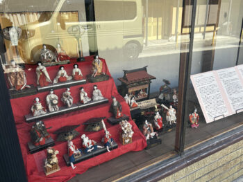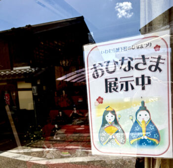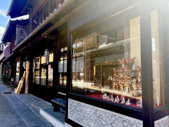実際に町を歩いてみると、お店の軒先や町屋の中にさりげなく飾られているおひなさまに思わず足を止めてしまいます。