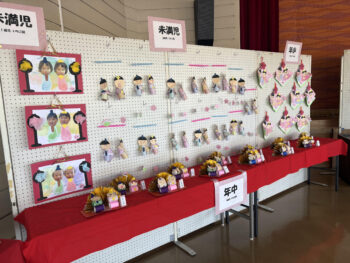 また、会場には地元の子どもたちが作った土びなやおひなさまも展示されていました。ひとつひとつ手作りされた作品は、どれも可愛らしく、見ていると自然と笑顔になります。
